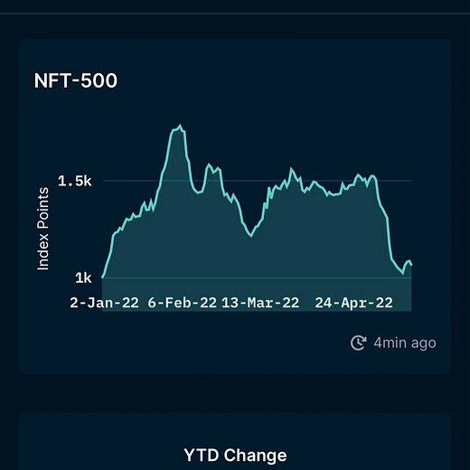 Nansen’s NFT500 index consists of top NFT collections on Ethereum by market cap similar to the famous S&P500 index. Interestingly, this index is up over the year unlike the S&P500 (worth noting that the NFT index is tracked on ETH instead of USD). These top NFTs are like luxury Gucci handbags which don't really lose value in bear markets and the holders tend to be more attached to their collections